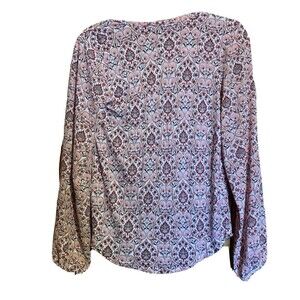 Ann Taylor LOFT Womens Size XS Multicolor Paisley Print Split Neck Blouse Top