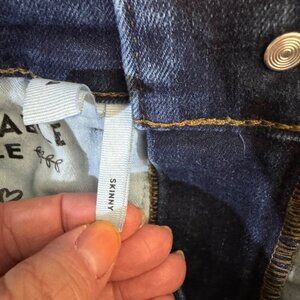 These Ann Taylor LOFT skinny jeans feature a classic dark wash, enhancing your wardrobe with a timeless style. They offer a sleek fit and are constructed with quality denim, ensuring comfort and durability.