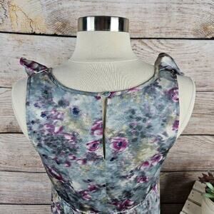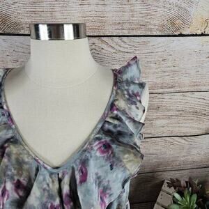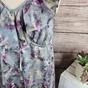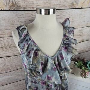 Ann Taylor LOFT Sleeveless Ruffle Neckline Watercolor Dress Size