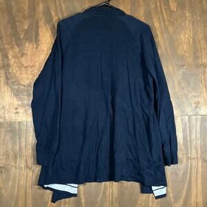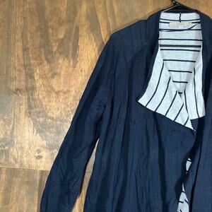 Ann Taylor LOFT Womens Sweater Navy Blue Striped Open Draped Cardigan Stretch L
