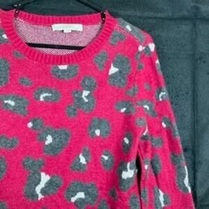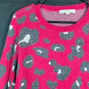 Ann Taylor LOFT Womens Sweater Pink Animal Print Wool Blend Medium