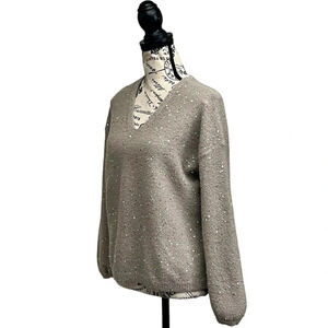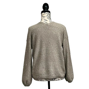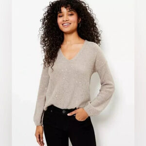 Ann Taylor LOFT Women's Tan Sequin V Neck Balloon Sleeve Sweater Size M Shimmer