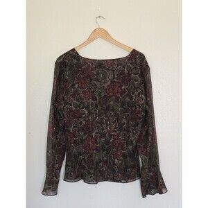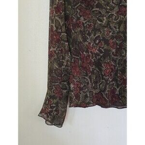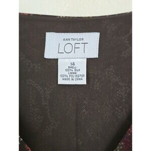 Ann Taylor LOFT Womens Top Blouse Long Bell Sleeve Floral Silk Size 14 Brown