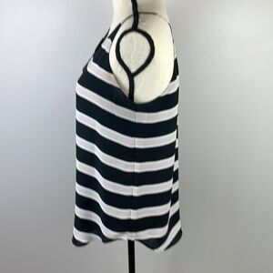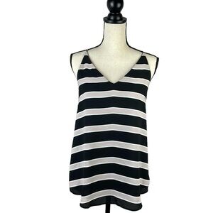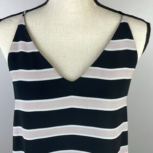 Ann Taylor LOFT Womens Top Tank SZ S Black Pink Striped V neck Strappy Flowy
