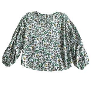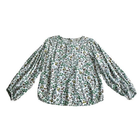 Ann Taylor LOFT Womens long sleeve White Floral Blouse Balloon Sleeves Sz S