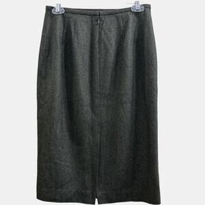 Ann Taylor LOFT skirt. Pencil skirt hits around knee length. Classic/timeless look great for capsule wardrobe. Great basic for work, worship, or night out. The weave looks like super small checks. Dark grey color w green undertones. 3rd pic seems most accurate to me. Wool rayon polyester blend outer material. Fully lined in acetate. Slit in back along with invisible, zipper & hook and eye closure. Fitted pencil style excellent used condition. Size 2. Dry clean only. Feel free to make a reasonable offer. Or browse & message me for a great bundle deal!