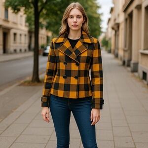 Ann Taylor LOFT Wool Blend Plaid Jacket – Black, Yellow & Brown – Size M