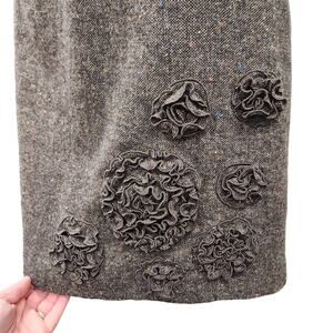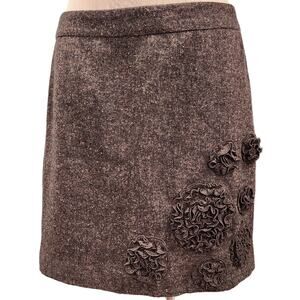 Y2k feminine floral rosette appliques on the front hem of this cute brown wool tweed mini skirt. Great used condition!