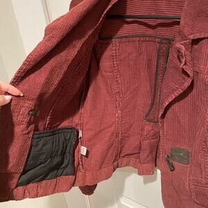 This burgundy blazer from LOFT features a tailored, structured design with a notched lapel collar, offering a sophisticated touch to any outfit. Crafted from a textured fabric, it provides a stylish and polished look, perfect for both professional and casual settings. The fitted silhouette ensures a flattering fit, making it a versatile addition to your wardrobe.