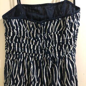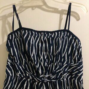 Ann Taylor LOFT dress mini Navy blue & white gathered waist 100% cotton