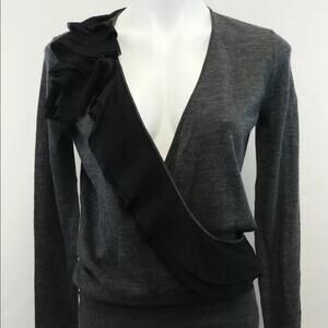 Ann Taylor LOFT gray ruffled wool sweater XS