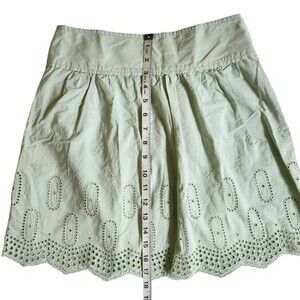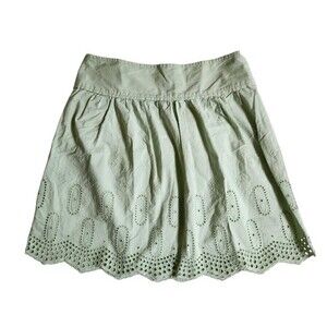 Ann Taylor LOFT green cottagecore prairie eyelet trim mini skirt sz 00