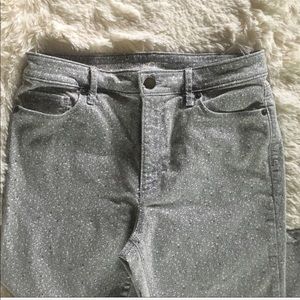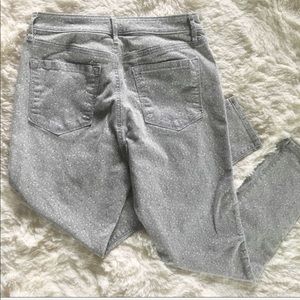 These pants are in like new used condition and there are no flaws. The print is a light gray/blue floral. They are high waisted. The inseam is 26 1/2" and the rise is 11". Let me know if you have any questions! ๐๐พ