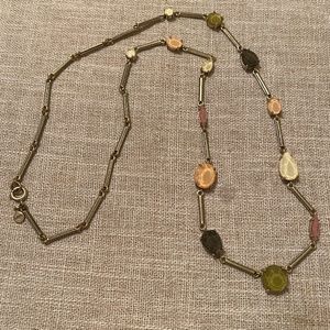 This listing is for an Ann Taylor Loft necklace. Long. Gold tone. Faux satellite stones. Measures about 30" long. It's in great preowned condition.