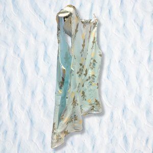 Light blue sleeveless summer top with yellow & blue flowers, size 2. Empire waist with a slight flare at the hem. Fully lined with 100% cotton. Very Good Used Condition, 100% cotton, made in China.