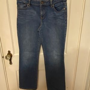 This listing is for a pair of Ann Taylor LOFT jeans. Original Boot. Embroidered on back pockets. 99% cotton 1% spandex. Size 8P. Measure 16" at the waist and inseam is 28". They are in great preowned condition. No rips, stains or tears.