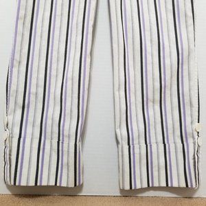Striped cropped cuffed pants with button belt loop detailing. 2 back pockets. Zip fly with double hook-and-bar closure with interior button closure. Style number 57-124061. Business casual, career, work, office, church, preppy, summer, spring.