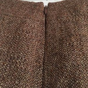 Brown LOFT skirt, moderately worn, but in great condition! Hits me just below the knee (I am 5'2). The skirt is lined and made of 75% wool. Hidden, side zipper and a slit in the back.