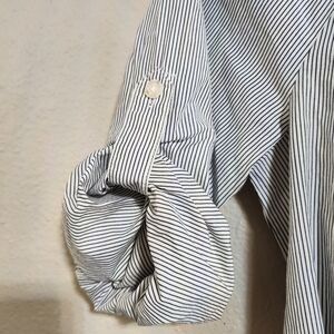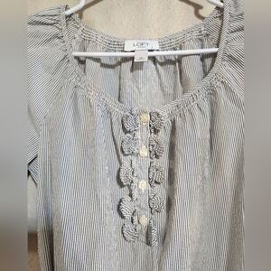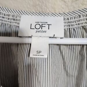 ann taylor loft black & white striped tunic blouse top with waist tie and roll tab sleeves Size small petite. Great condition