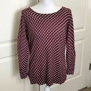 Ann Taylor LOFT sweater size large lightweight burgundy and black print LS LOFT