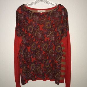 Ann Taylor LOFT top career knit red striped paisley Sz XL FIRM on PRICE