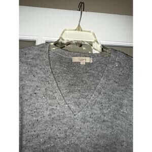 Ann Taylor LOFT v neck sequin sweater long sleeve Party Event Large Silver