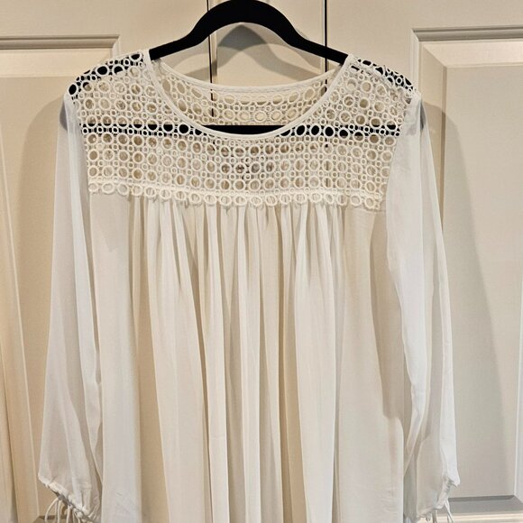 Ann Taylor LOFT women's long sleeve blouse. SZ S. Cream. Semi-sheer. Ties at the sleeves.