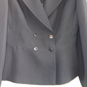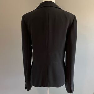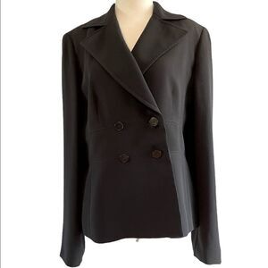 Gorgeous chic black suit jacket from Ann Taylor, size 8.  Featuring a double breasted design to the front, structured seams along the waist for a slimming tailored effect, and button cuffs; fully lined.