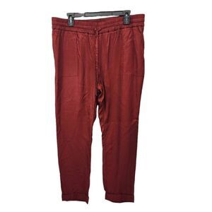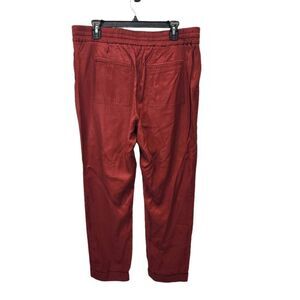 Ann Taylor LOFT Large Petite Elastic Tie Waist Pants Cuffed Cropped Copper Red