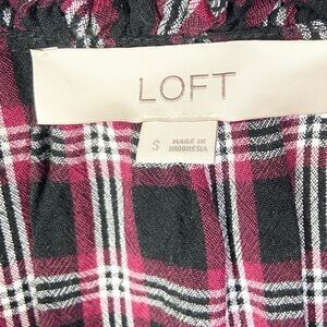 Ann Taylor LOFT•red black plaid tartan long sleeve peplum top medium