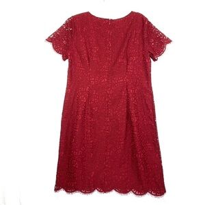 Ann Taylor Lace Overlay Sheath Dress Short Sleeve, Mini - Deep Red, Size 8