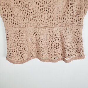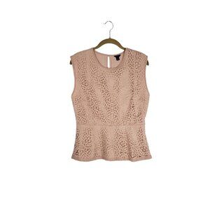Ann Taylor Lace Peplum Top Beige Blush Sleeveless Womens Size Small