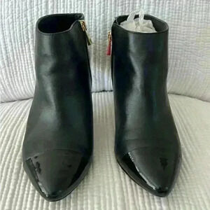 Ann Taylor Lacey Black Leather Cap Toe Ankle Boots Size 10M