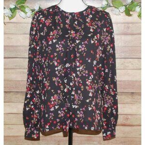 Ann Taylor Ladies Black Floral Long Sleeve Blouse Size S Button Up Ruffle Front
