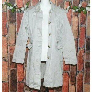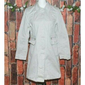Ann Taylor Ladies M Khaki Button Front Trench Coat Classic Heavyweight Pockets