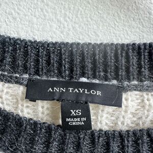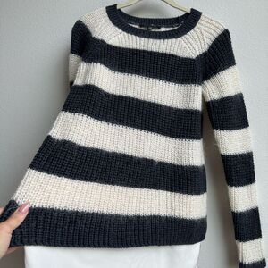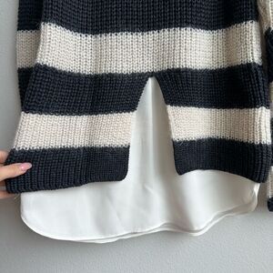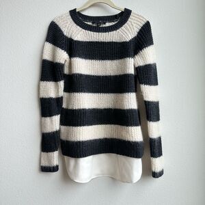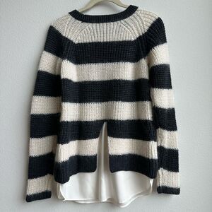 Ann Taylor Large Stripe Split Hem Layer Wool Blend Cream Sweater Oversize XS