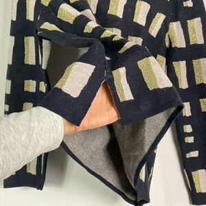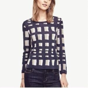 Ann Taylor Lattice Knit Metallic Sweater Size Large; Navy blue, gold, ivory