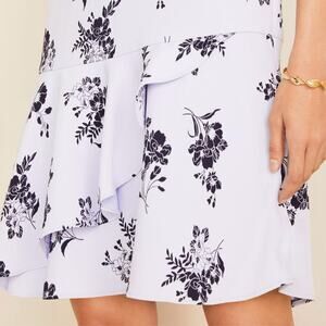 Size 8 Ann Taylor mini dress. Lavender fabric with a black floral print. Flutter sleeves. Shift/drop waist silhouette with a ruffle flounce hem. Lined. Back zipper. No flaws, great condition!