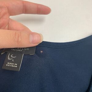 ANN TAYLOR LAYERED TOP WOMEN L LARGE NAVY STRIPED SHORT SLEEVE LIGHTWEIGHT SCOOP
