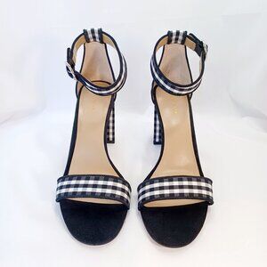 Ann Taylor Leannette Piped Gingham Block Heel Sandals Black/White 9B NEW