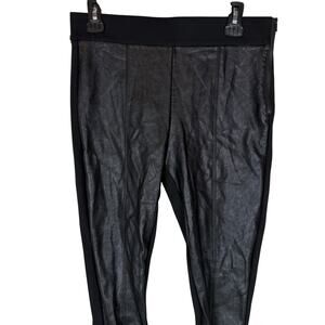 Ann Taylor Leggings Womens 6 Black Stretch Faux Leather Front Panel Side Zip