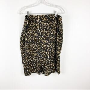 EUC no stains or tears. Black and Tan leopard print pencil skirt with a slight ruffle on the back hem. Size 10 silk blend fully lined.