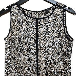 Sleeveless leopard top with black trim. Keyhole back, hidden side zip . Peplum style