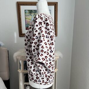 Ann Taylor Leopard print short sleeve sweater shirt size S boat neckline