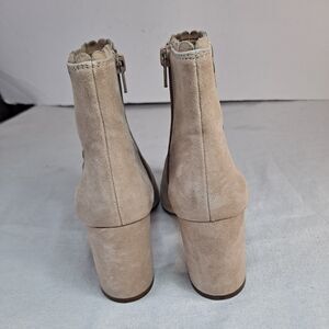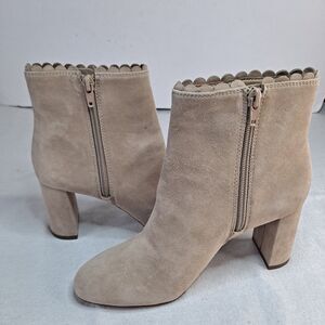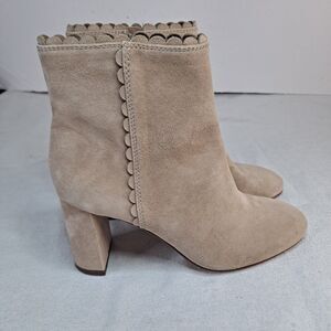 Ann Taylor Liana Booties Women's Sz 5.5M Tan Suede Scalloped Ankle Side Zip