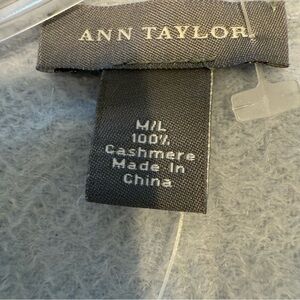 BRAND NEW with tags. Women’s Ann Taylor 100% cashmere shawl / wrap in light blue. Hook & eye close, fringe trim. Sz M/L MSRP $118
