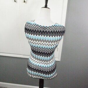 Ann Taylor Light Blue/Black Patterned Sleeveless Top Size Small