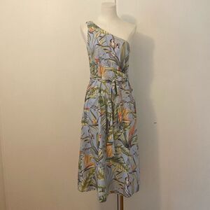 Ann Taylor Light Blue One Shoulder Tropical Print Fit & Flare Midi Dress Size 4