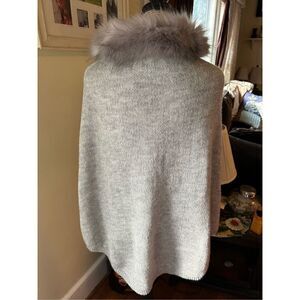 Ann Taylor Light Gray Poncho Sweater Faux Fur Collar NWT retails for $99.