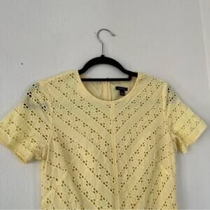 Ann Taylor Light Yellow Eyelet Short Sleeve Dress